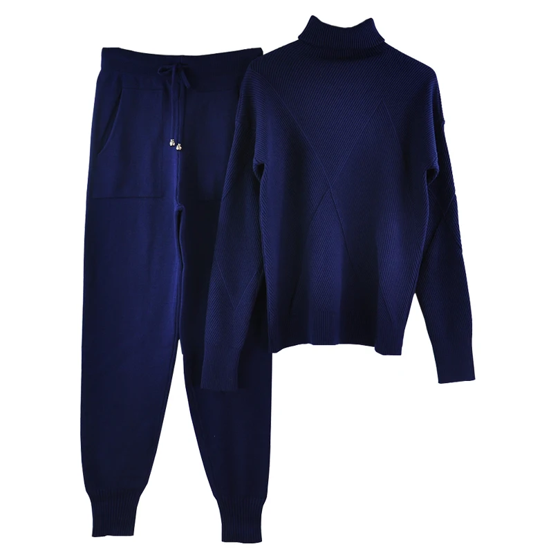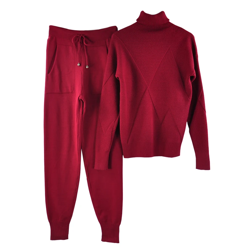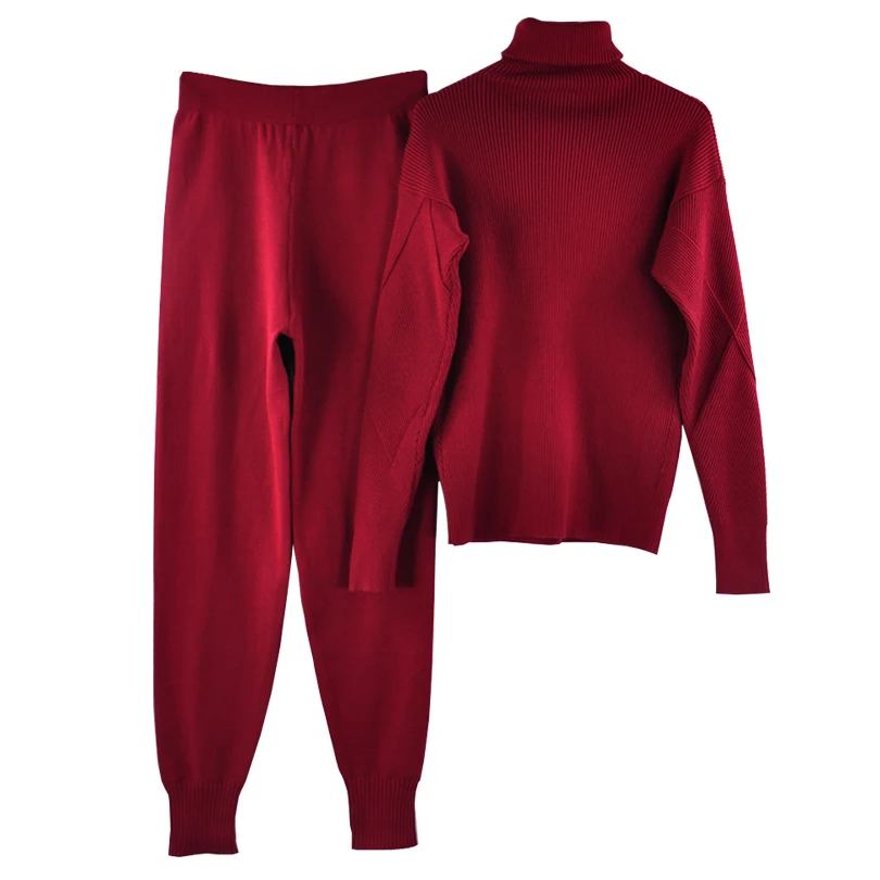 Special Offer TAOVK Autumn Knitted Tracksuit Turtleneck Sweater Casual Suits Women Knit Pullovers and long Pant 2 Piece Set Female Discount 42% Today!