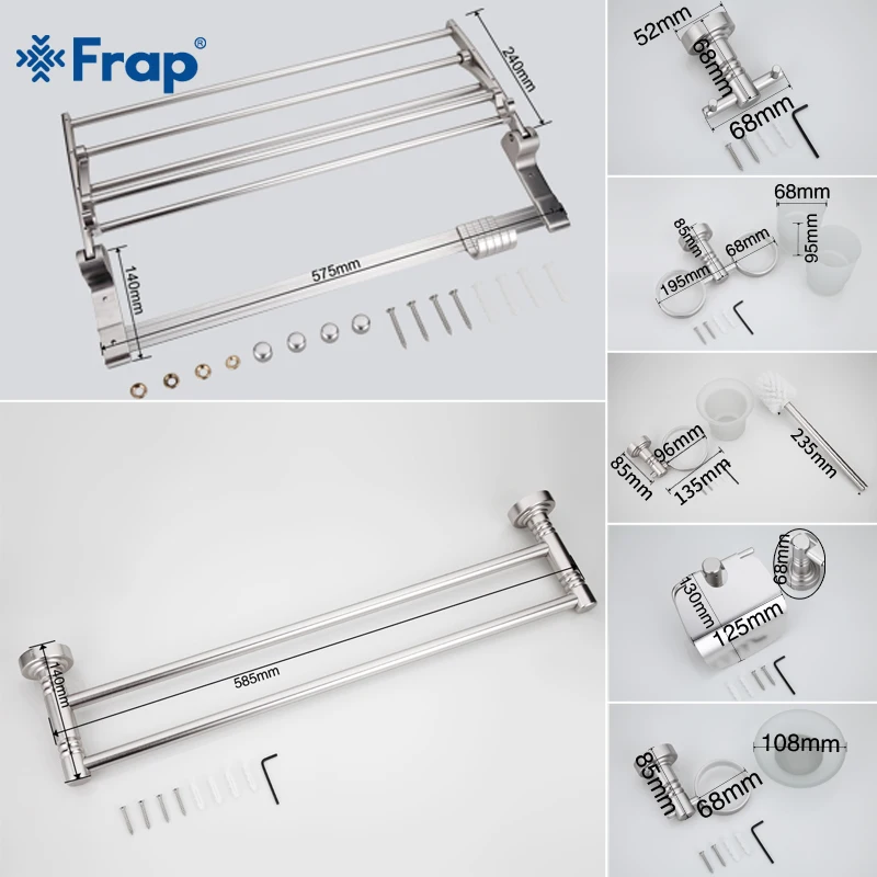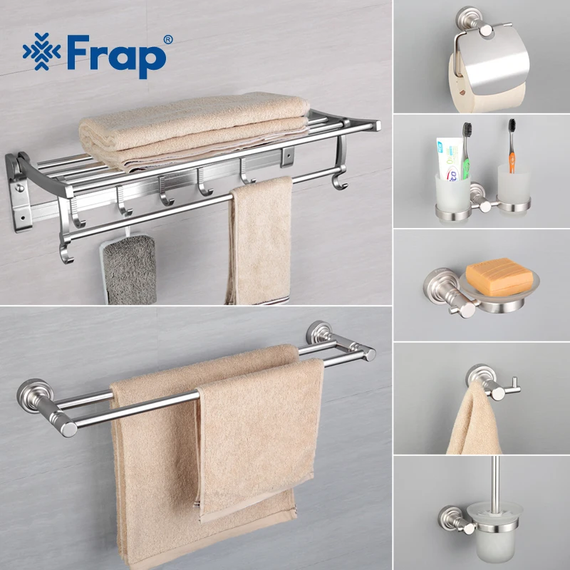 Special Offer Frap 7 Pieces Bathroom Accessories Space Aluminum Cup Holder Glass Cups Robe Hook Tooth brush Tooth Cup Holder F37T7 Discount 48% Today!