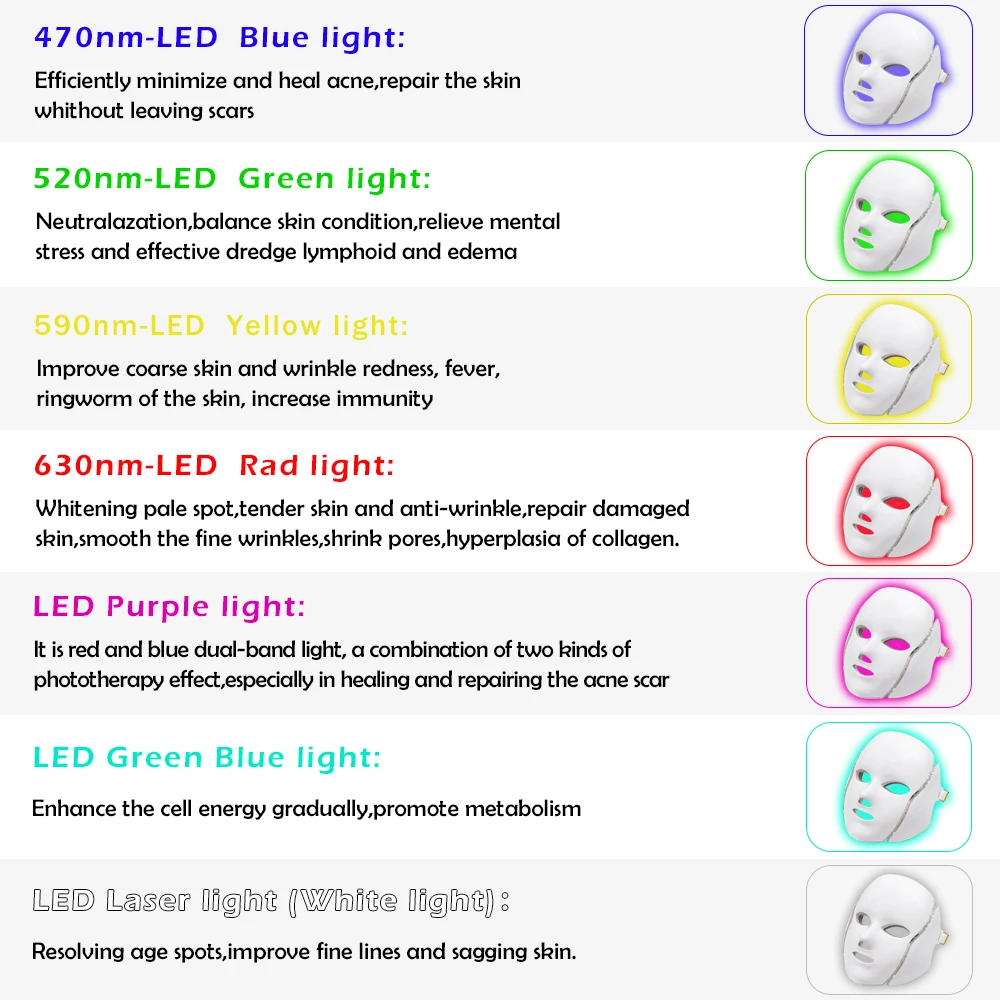 Special Offer 7 Colors Light LED Facial Mask With Neck Skin Rejuvenation Face Care Treatment Beauty Anti Acne Therapy Whitening Instrument Discount 49% Today!