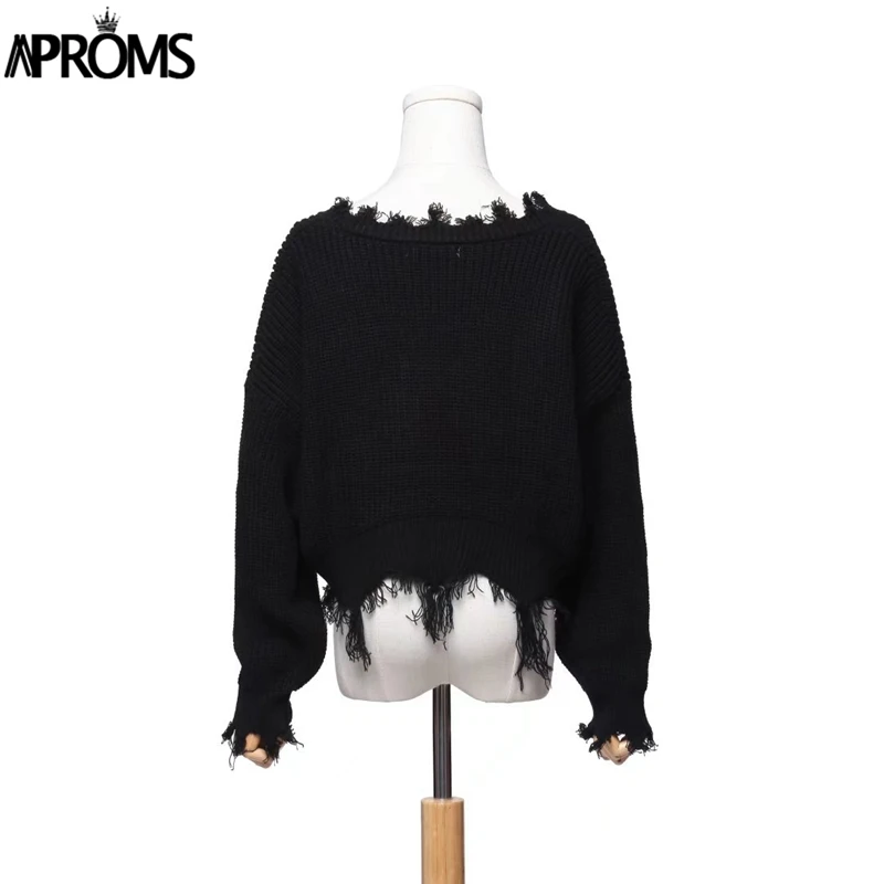 Best . (50% Off) Buy Aproms Tassel Deep V Knitted Pullover Female Autumn Winter White Long Sleeve Knit Crochet Sweaters Women Cropped Jumper Pull Top Price Online.