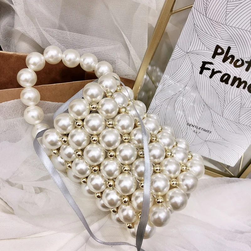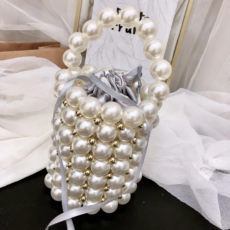 Special Offer Acrylic pearls bag beaded Vintage bucket totes women plastic evening party Small mini handbag 2019 summer luxury brand wholesale Discount 9% Today!