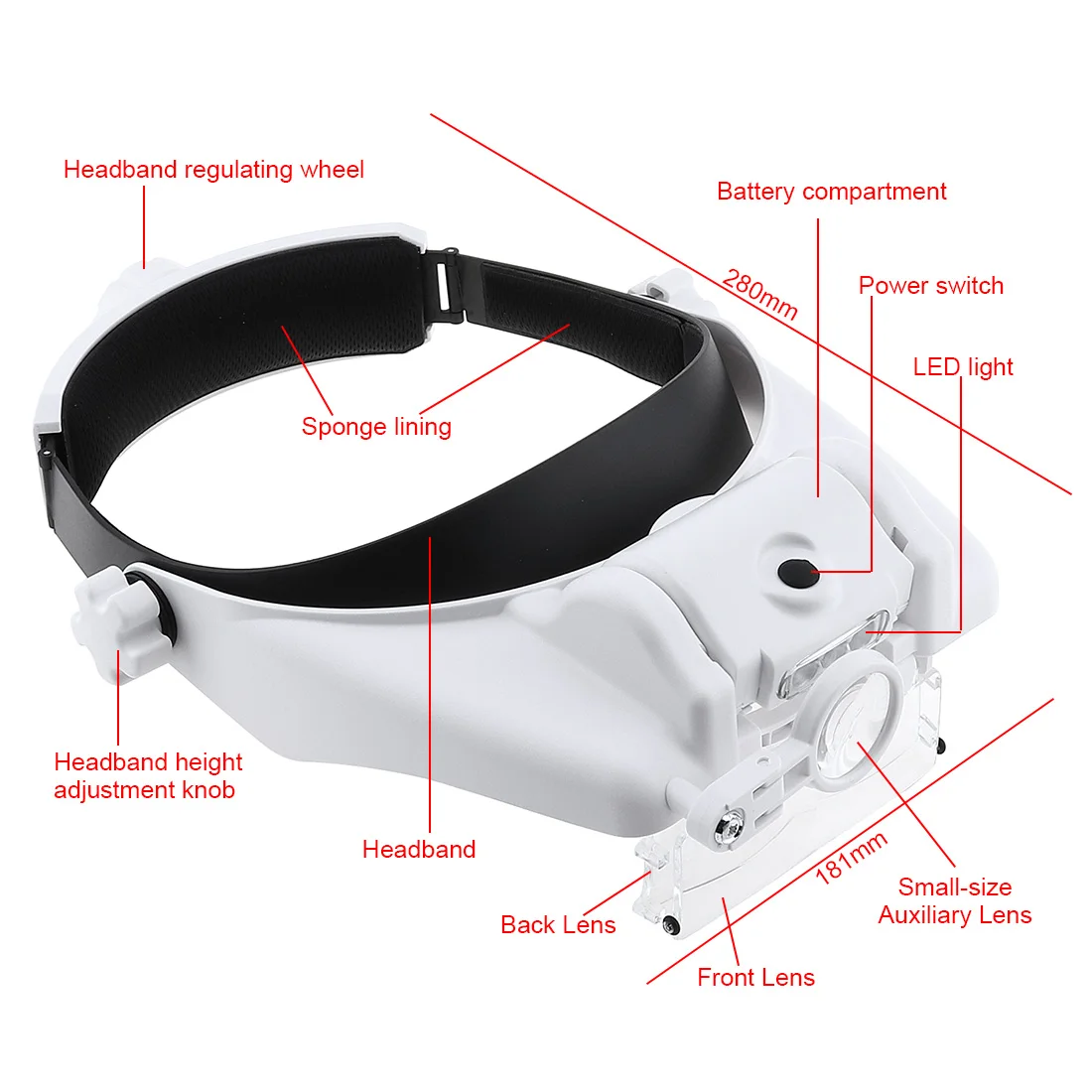 Best . (27% Off) Buy 11.5X Headband Eyeglass Magnifier 6 Amplification Ratio Adjustable Magnifying Glass with 3 LED Light for Drawing Handicraft Cheap Online.