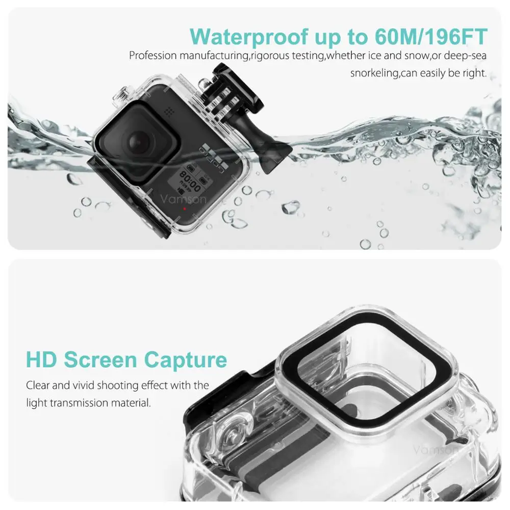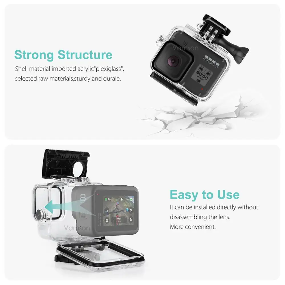 Best . (27% Off) Buy Vamson for GoPro Hero 8 Black 45m Underwater Waterproof Case Diving Protective Cover Housing Mount for Go Pro 8 Accessory VP651 Price Online.