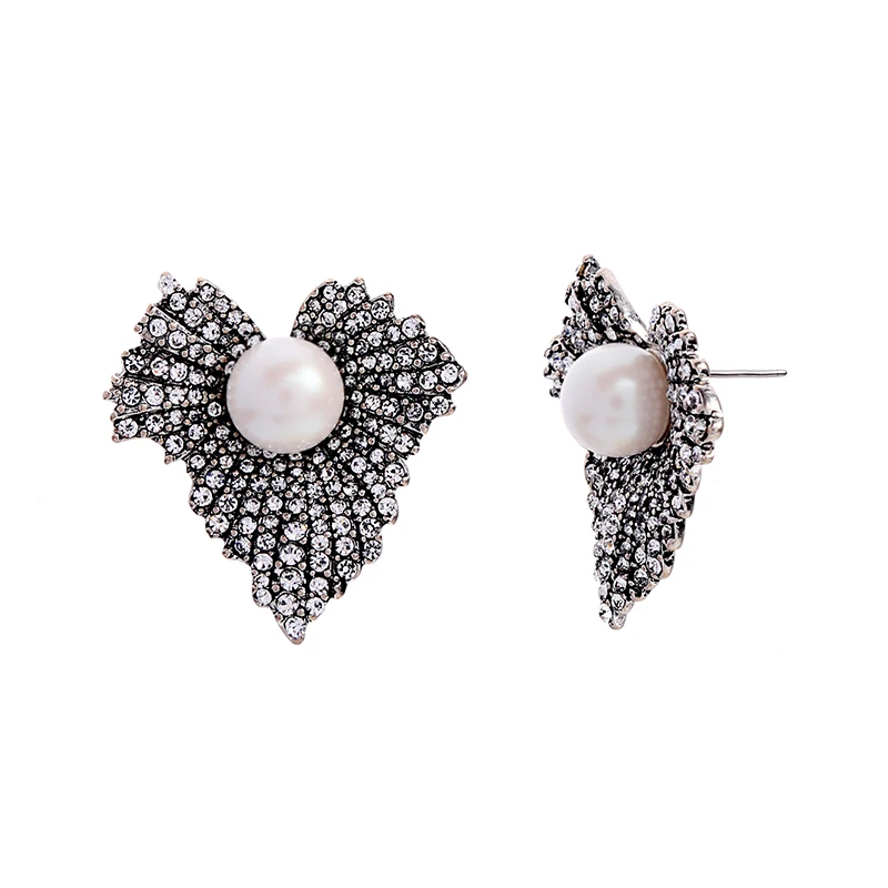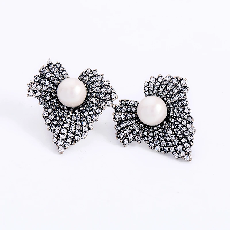 Special Offer Antique Silver Color Indian Jewelry Crystal Grape Leaf Stud Earrings Acrylic Pearls For Women Fashion Accessory Discount 45% Today!