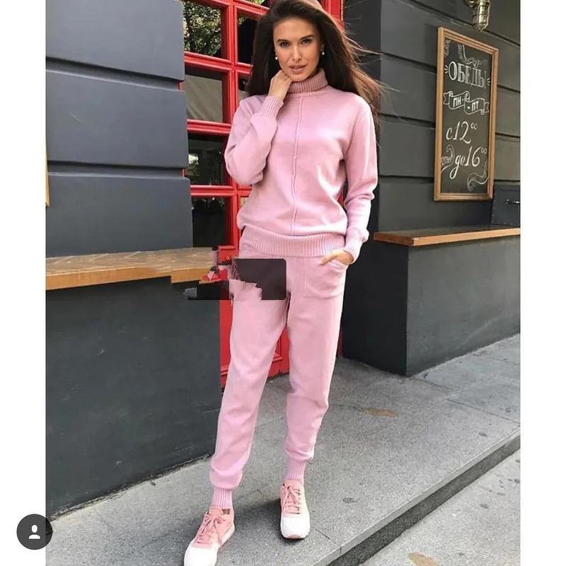 Special Offer FORERUN Women Two Piece Sweater Outfit Turtleneck Sweater Knitted Pullover and Knitted Pants 2 Piece Autumn Suits and Set Discount 50% Today!