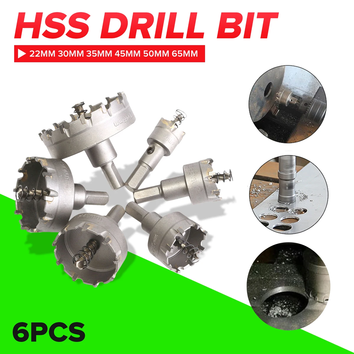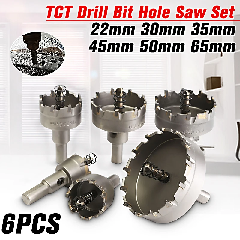 Best . (56% Off) Buy Doersupp 6Pcs HSS Hole Saw Set Carbide Tip TCT Core Drill Bit Hole Saw For Alloy Stainless Steel Cutter Power Tool Accessories Price Online.