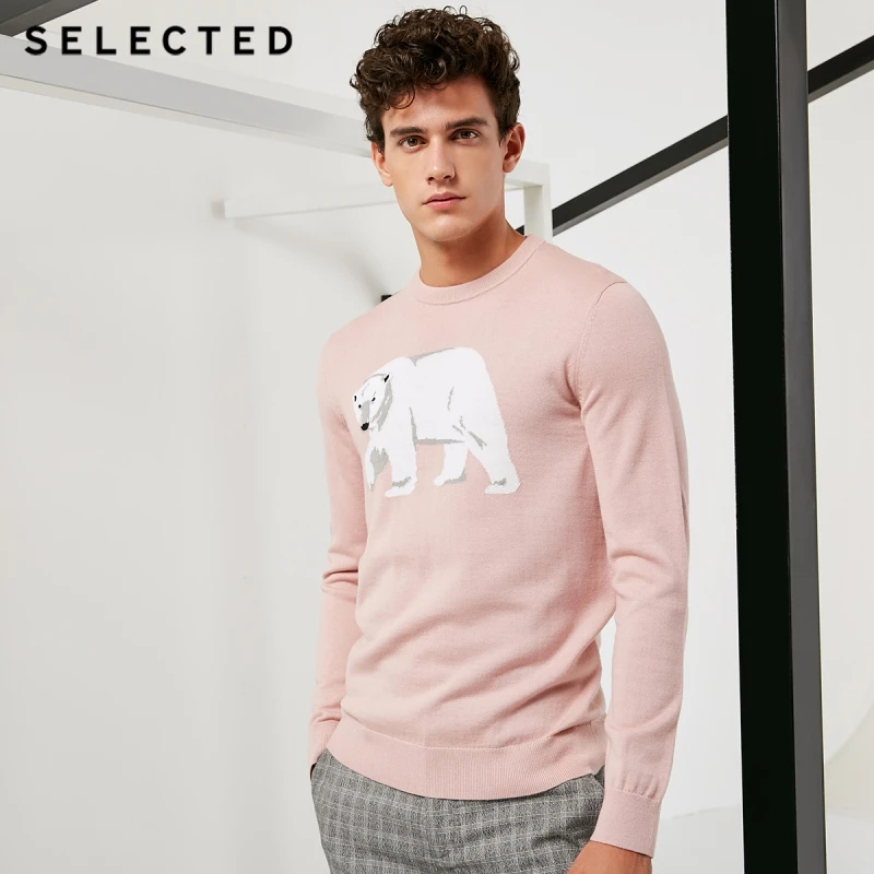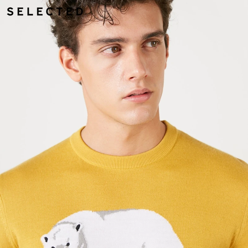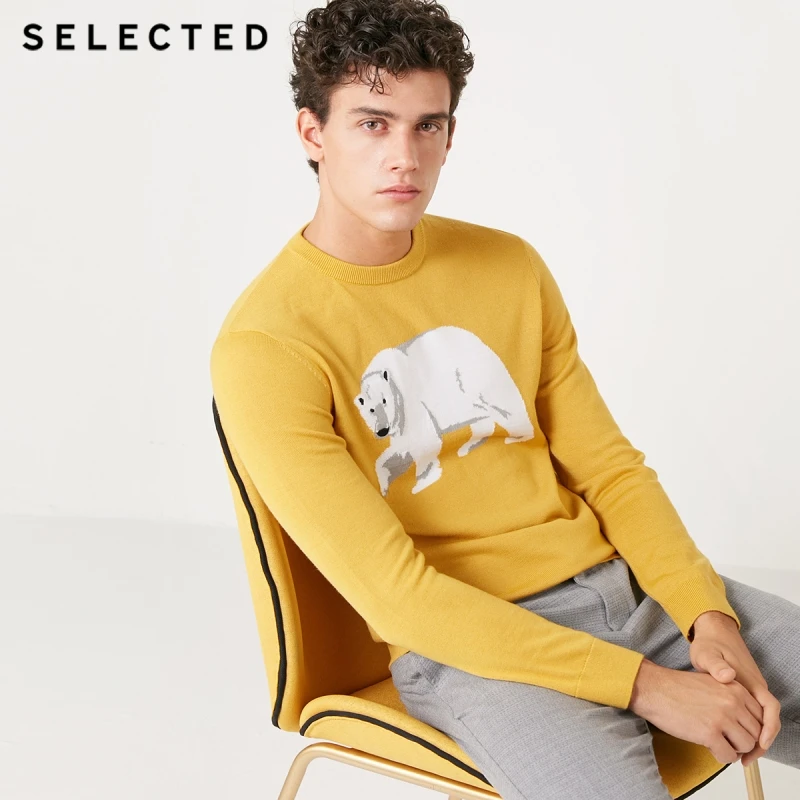 Special Offer SELECTED Men s Wool blend Pullovers Animal White Bear Pattern Sweatshirt O Neck Long sleeved Knitted Sweater S | 418424509 Discount 58% Today!
