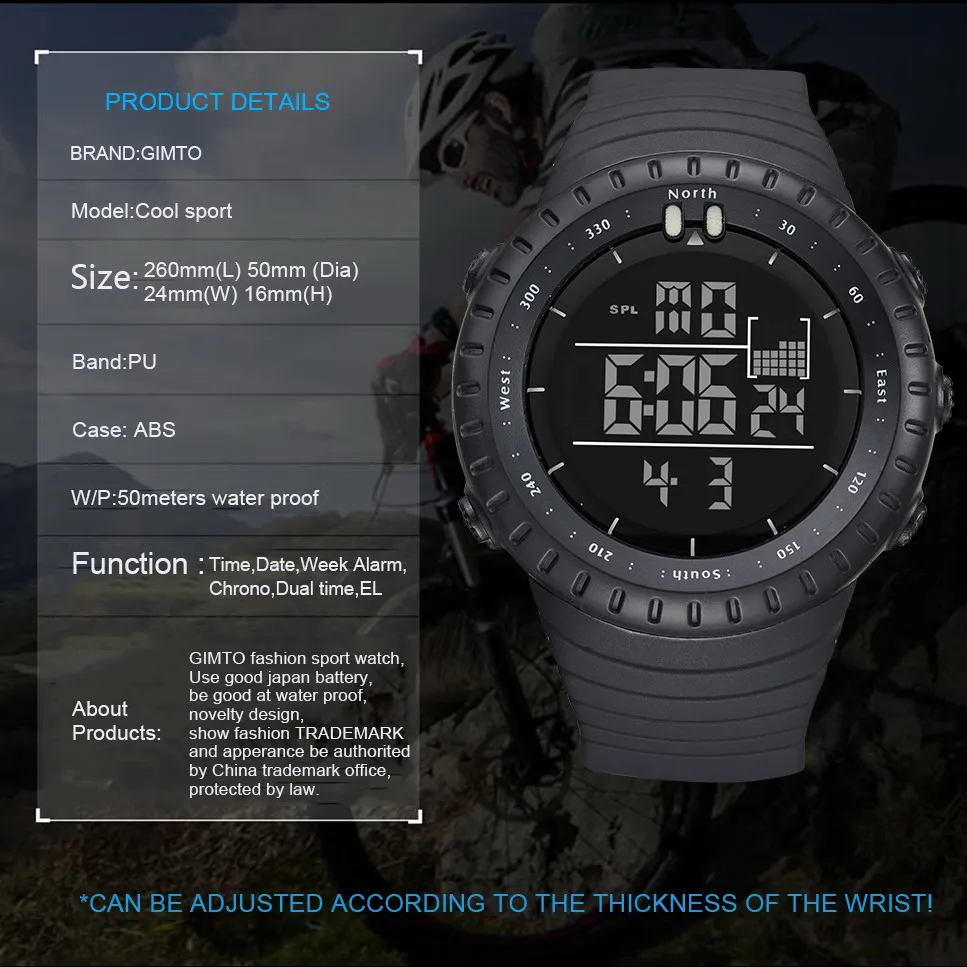 Special Offer GIMTO Large Digital Watch Men Sports Watches For Running Stopwatch Waterproof Militar LED Electronic Wrist Watches Men 2019 Gift Discount 64% Today!