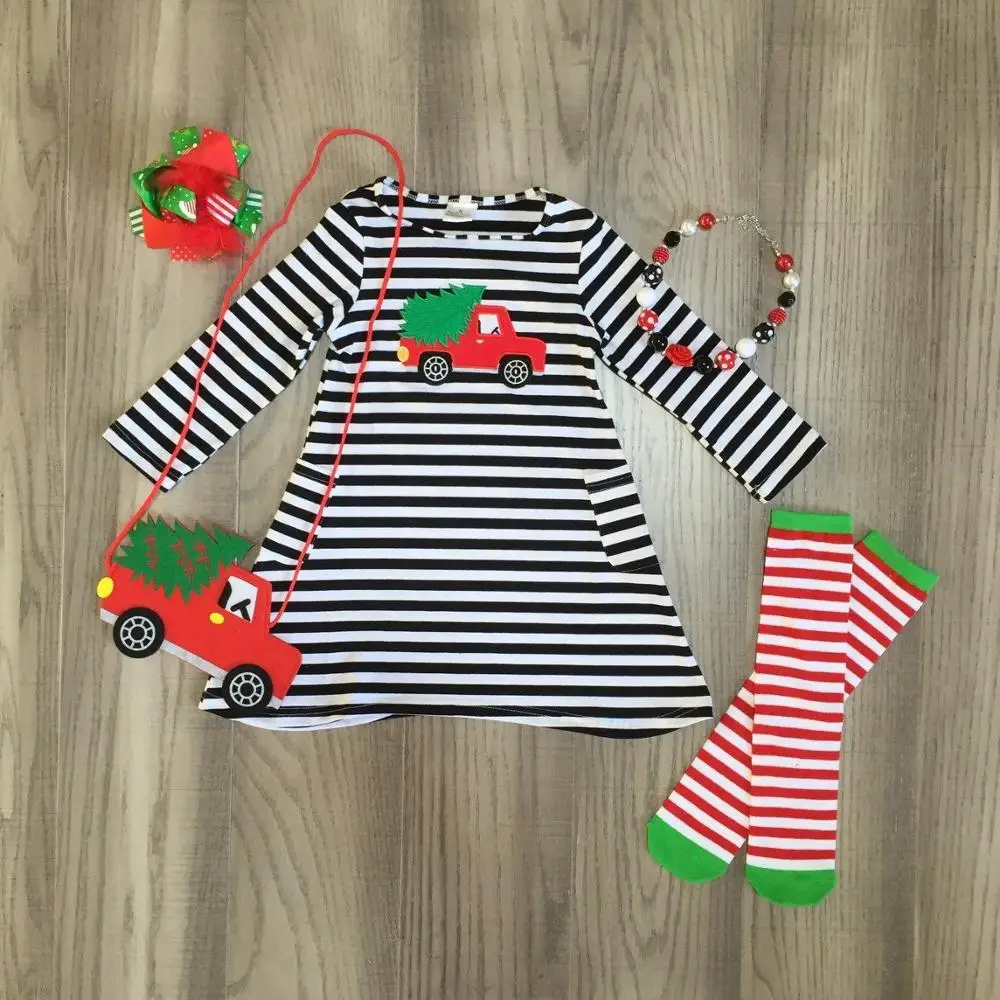 Special Offer baby girl christmas dress outfits girls snowman dress girls truck dress tree dress with bag stocking cute dress with accessories Discount 0% Today!