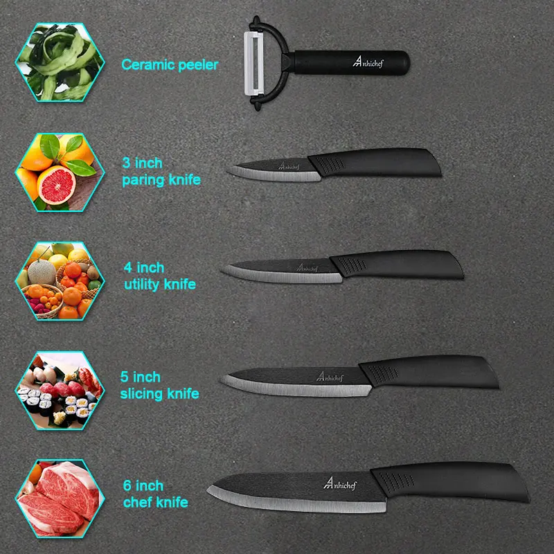 Best . (20% Off) Buy Kitchen knives Ceramic Knives Accessories set 3\" Paring 4\" Utility 5\" Slicing 6\" chef Knife+Holder+Peeler Black Blade Cheap Online.