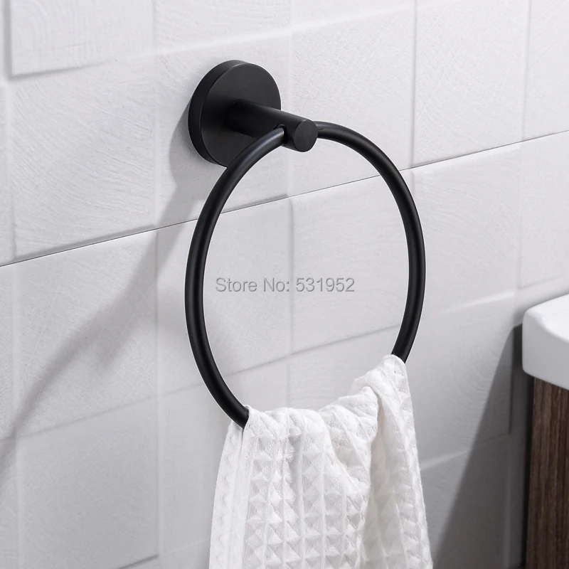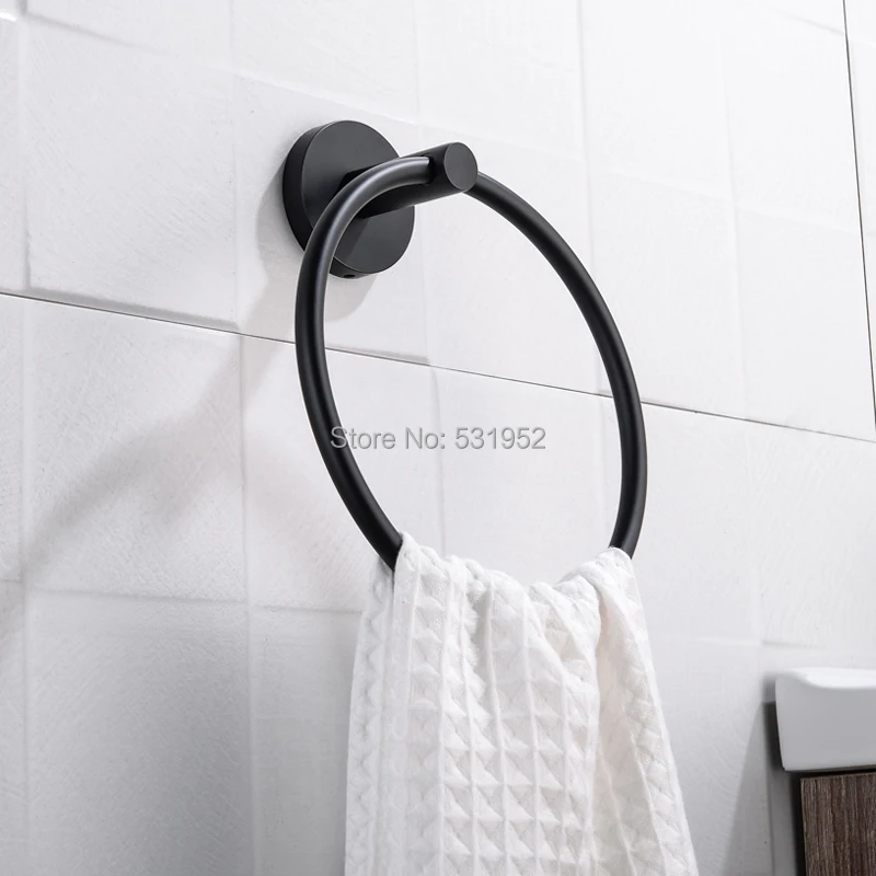 Best . (32% Off) Buy Free Shipping Black Towel Holder Towel Ring Round Wall Mounted Towel Rack Towel Shelf Stainless Steel Bathroom Accessories Price Online.