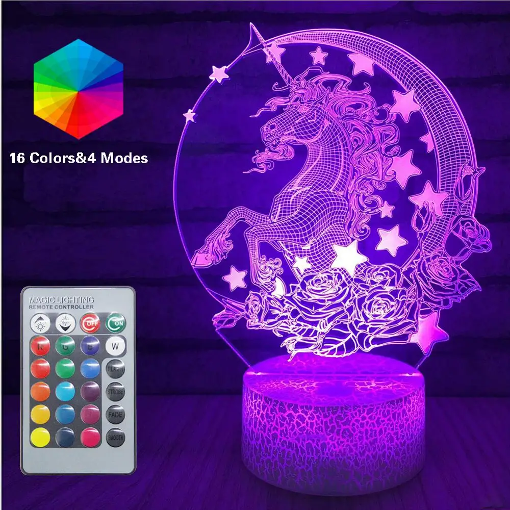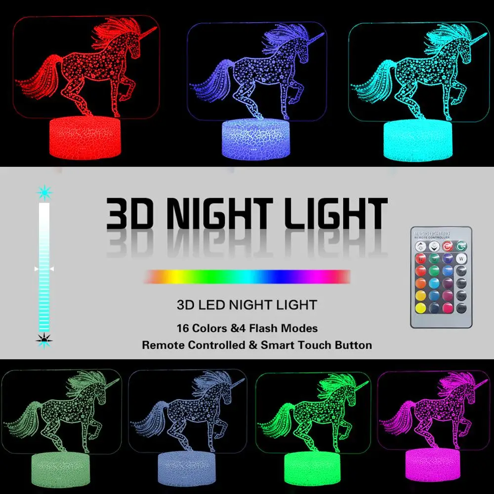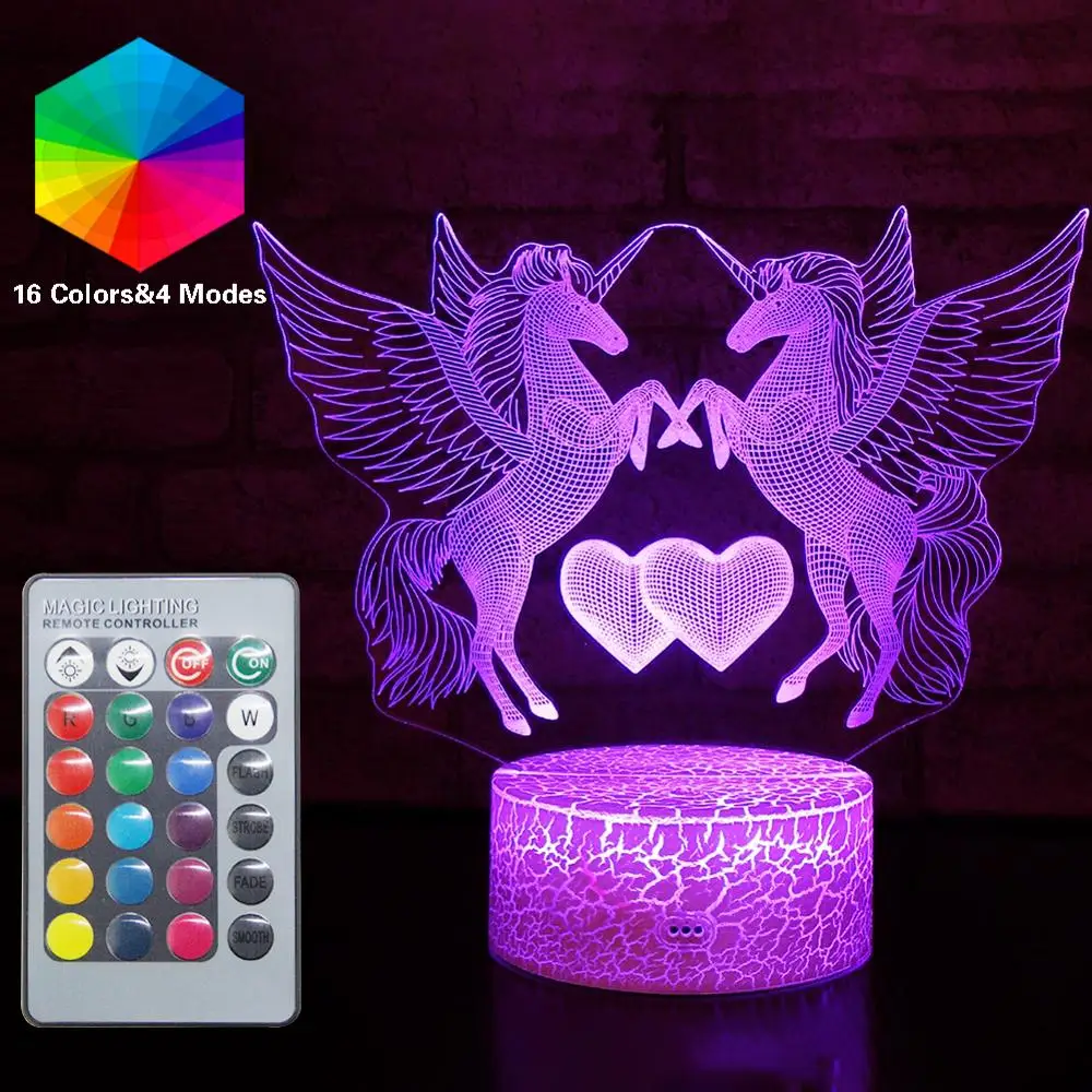 Special Offer 3D Unicorn NightLight LED Optical Illusion Lamps Remote Smart Table Lamp 16 Colors Decor Luminaria Lampara Girls Xmas Party Gift Discount 45% Today!