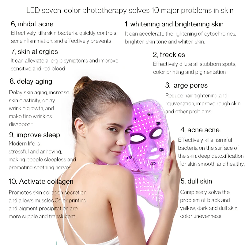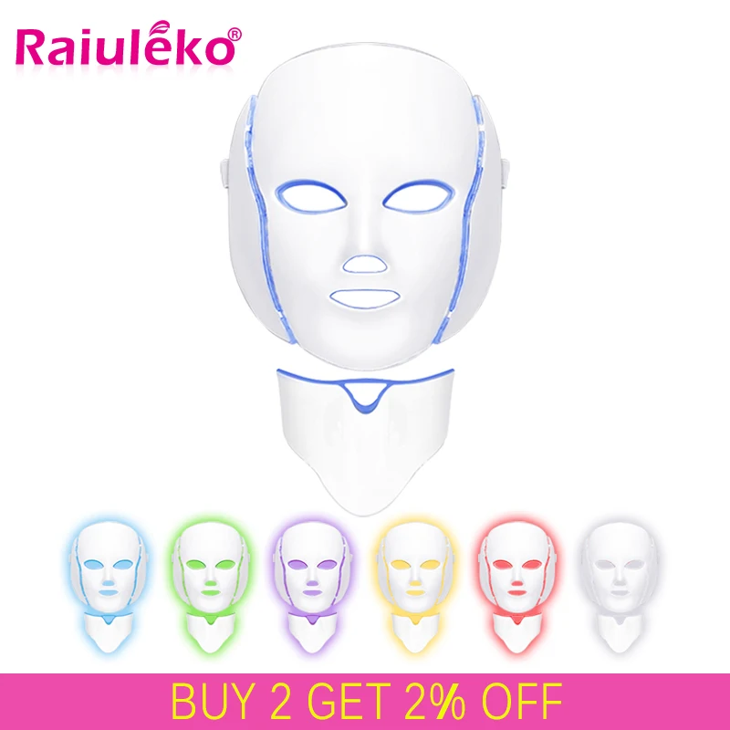 Special Offer 7 Colors Light LED Facial Mask With Neck Skin Rejuvenation Face Care Treatment Beauty Anti Acne Therapy Whitening Instrument Discount 46% Today!