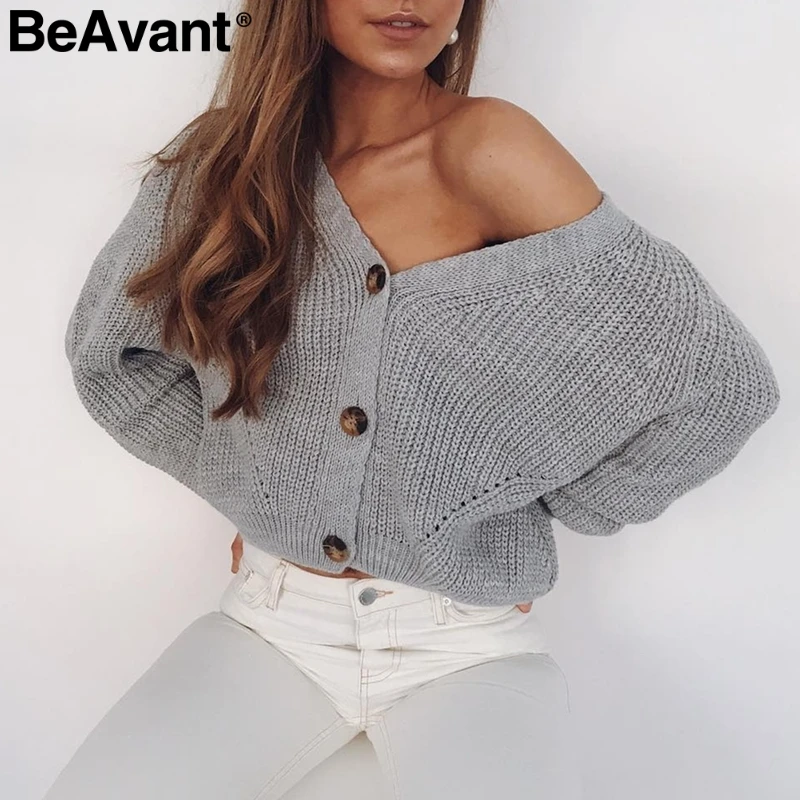 Special Offer BeAvant Sexy v neck knitted women cardigan Casual buttons bat sleeve white sweater cardigan Elegant autumn ladies sweaters tops Discount 56% Today!