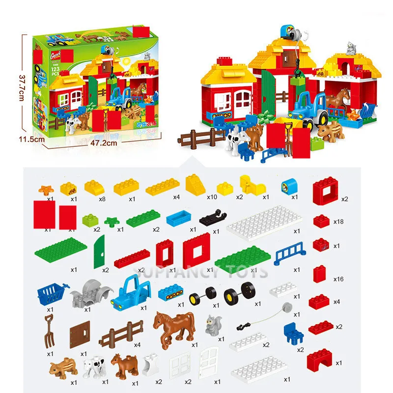 Special Offer 123PCS Happy Farm Big Size Building Blocks Sets Happy Zoo With Animals Kids City DIY LegoINGLs Duplo Bricks Toys for Children Discount 62% Today!