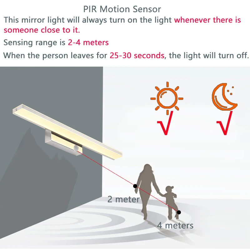 Special Offer LED Mirror Light 42 52cm PIR Motion Sensor Waterproof Modern Cosmetic Acrylic Wall Lamp For Bathroom Light sconce lamp ZJQ0005 Discount 15% Today!