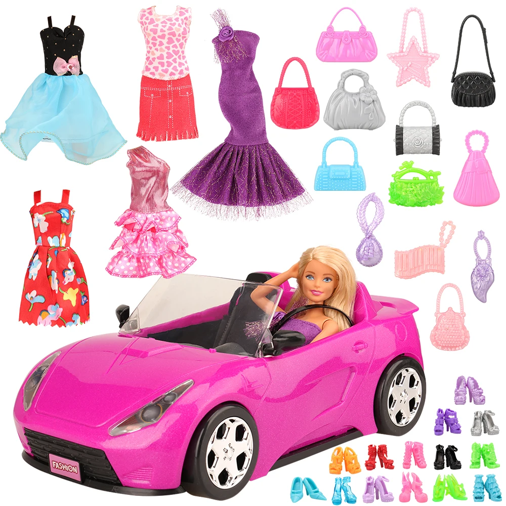 Special Offer Hot handmade cheap 26 items set Doll Accessories = 1 Toy car +5 Dolls Clothes +10 random shoes Objects For Barbie Game Toys Gift Discount 23% Today!