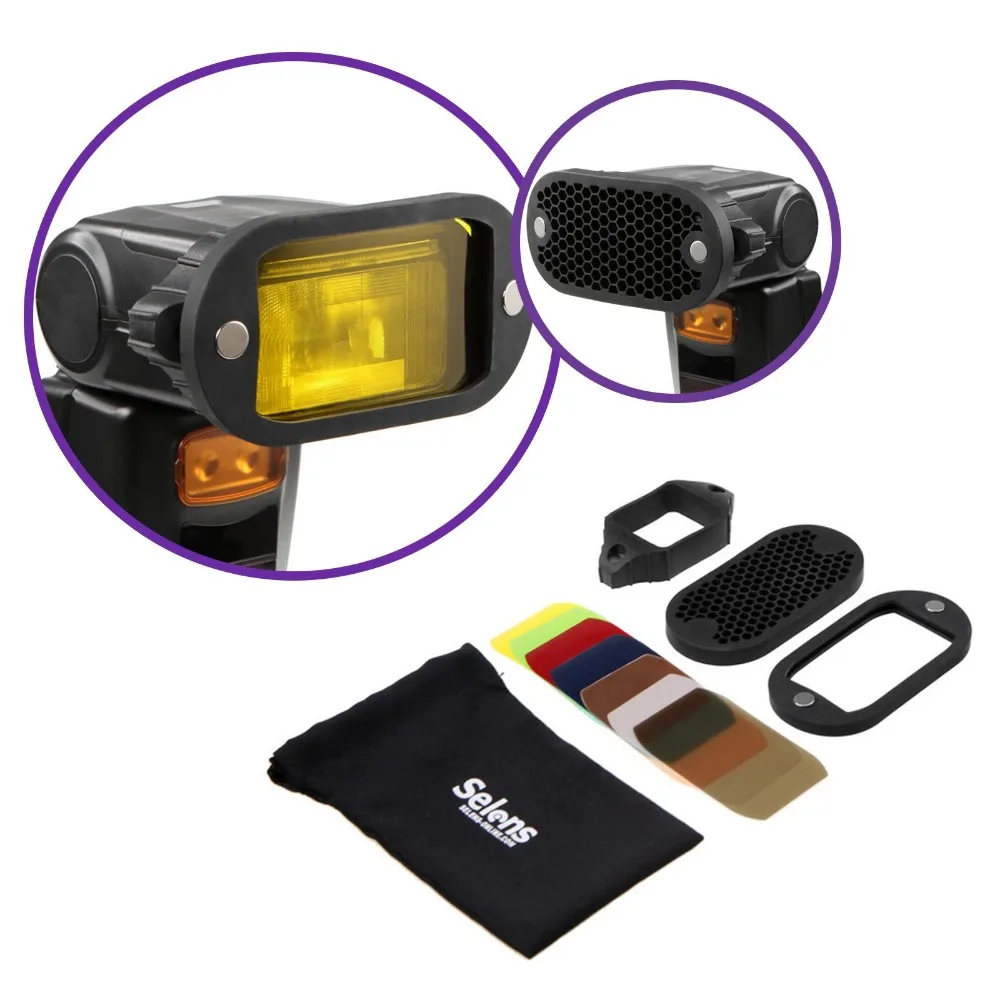 Best . (24% Off) Buy Selens Flash Speedlight Honeycomb Grid Diffuser Reflector with Magnetic Gel Band 7Pcs filters Flash Accessories Kit Price Online.