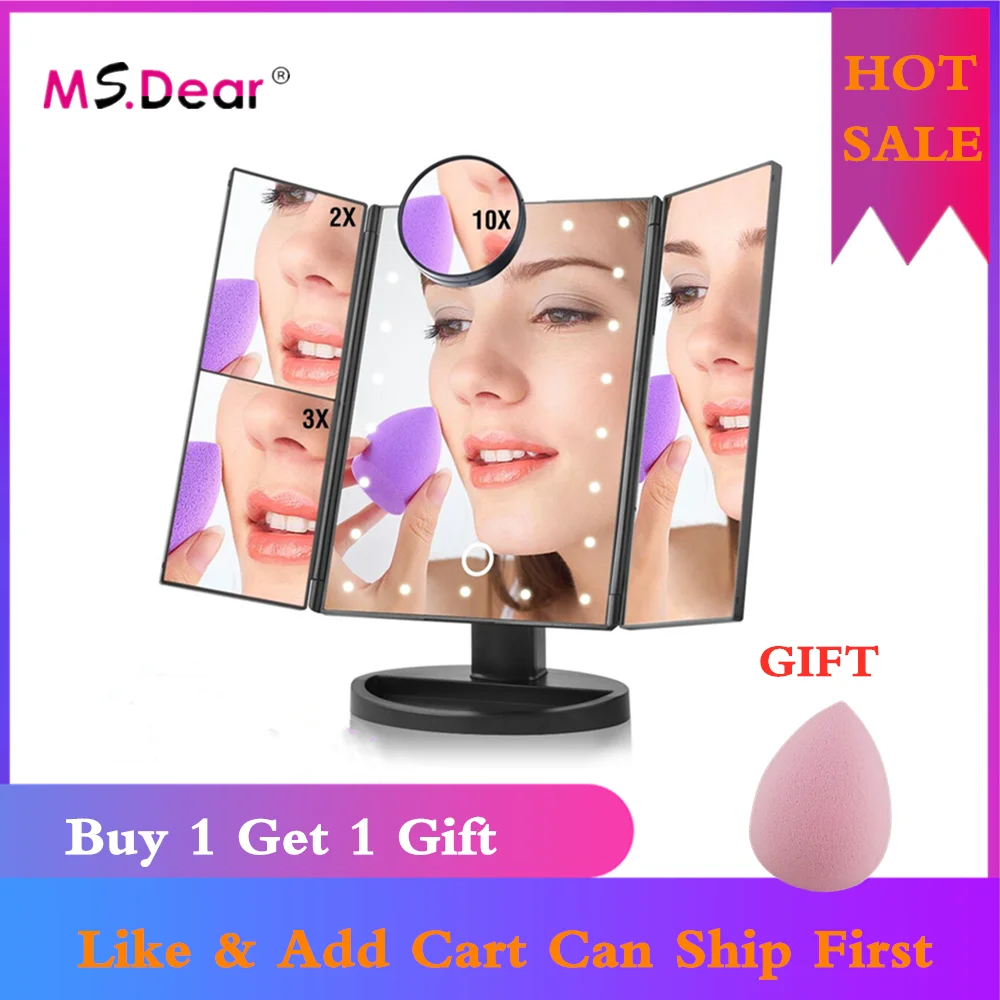 Special Offer 22 LEDs Folding Lamp Luminous Makeup Mirror 1X 2X 3X 10X Magnifying 180 degree Rotating Adjustable Tabletop Cosmetic Mirrors Discount 27% Today!