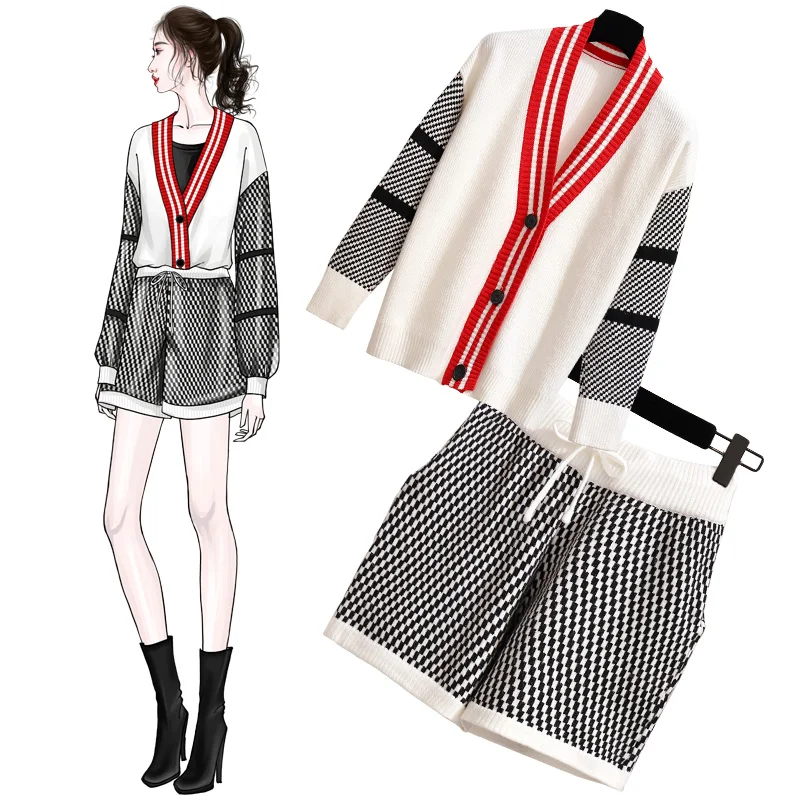 Special Offer ALPHALMODA V collar Long sleeved Outfit + Hot Shorts Women Autumn 2pcs Casual Sets 2019 New Fashion Knitting Jacket Shorts Set Discount 30% Today!