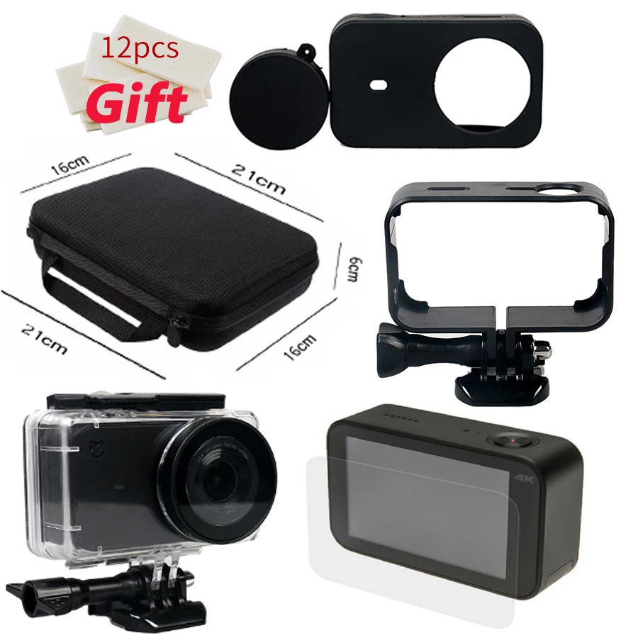 Special Offer For Xiao mi Mijia 4K Action Camera Accessories Waterproof Housing+Frame Shell+Skin Case +Lens Cap + Protector Film + Storage bag Discount 30% Today!