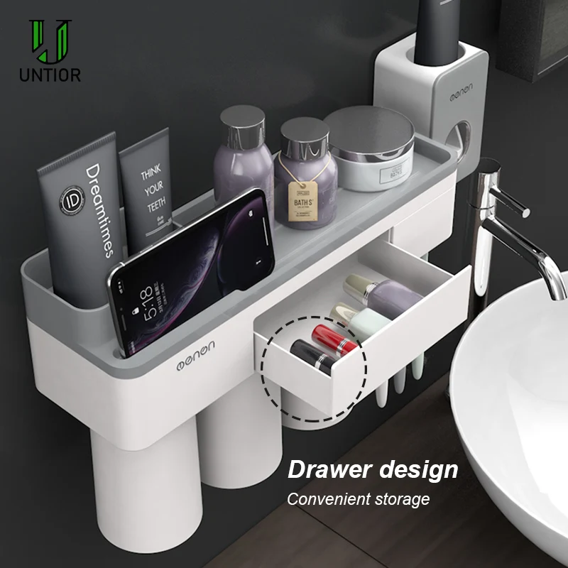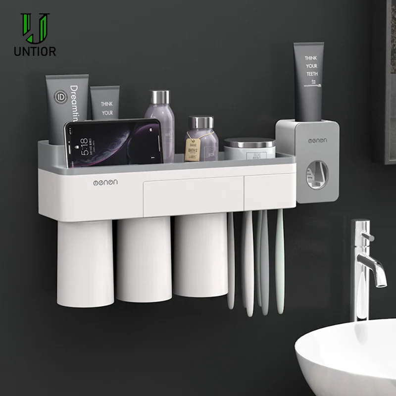 Best . (45% Off) Buy UNITOR Plastic Wall Mounted Toothbrush Holder Automatic Toothpaste Dispenser Toiletries Storage Rack Bathroom Accessories Set Cheap Online.