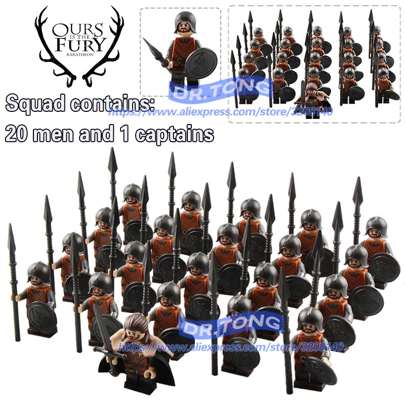 Special Offer 21PCS LOT Game of Thrones Eddard Stark Spear Sword Infantry Jory Cassel Ice and Fire Unsullied Infantry Building Blocks Toys Discount 9% Today!