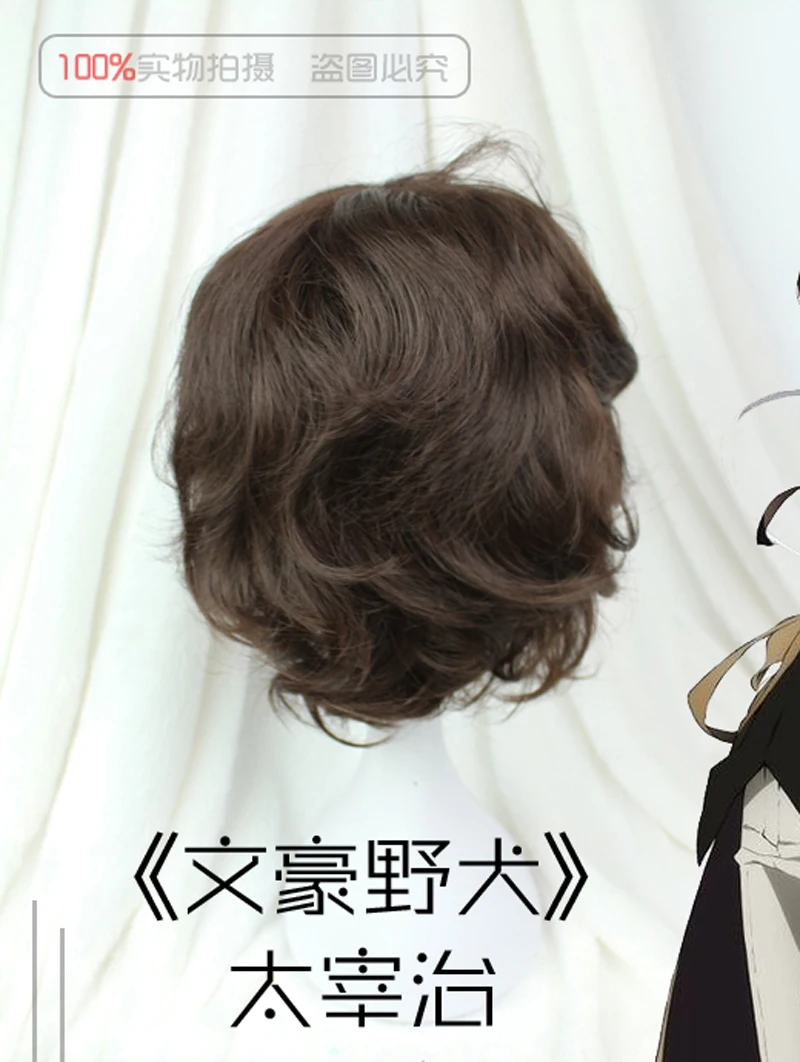 Special Offer Anime Bungo Stray Dogs Dazai Osamu Wig Heat Resistant Short Brown Curly Hair Cosplay Costume Wigs + Track No. + Wig Cap Discount 0% Today!