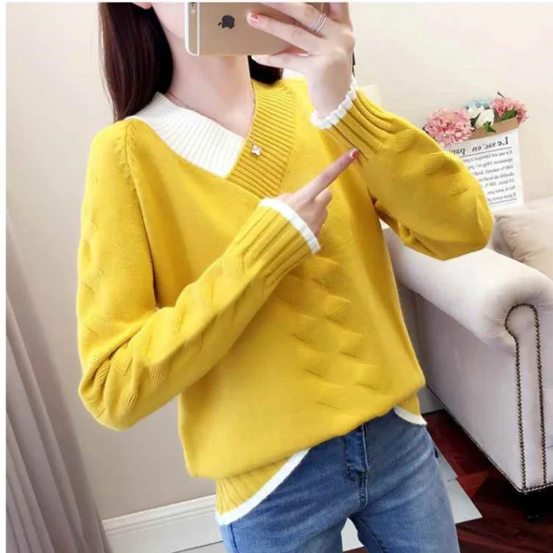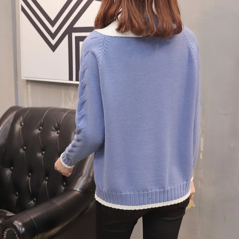 Special Offer Women Knitted Sweaters and Pullovers Casual Long Sleeve Women Warm V Neck Fall Jumper Korea Twist Female Solid Pull Blue Sweater Discount 30% Today!