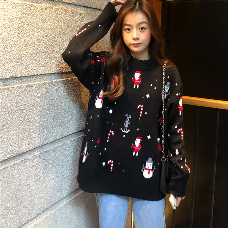 Best . (48% Off) Buy Women s Knitted Chrismas Snowman Thick Sweater Autumn Winter O Neck Long Sleeve Female Pullover Loose Reindeer Ladies Jumpers Price Online.