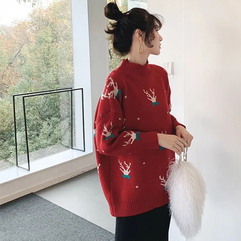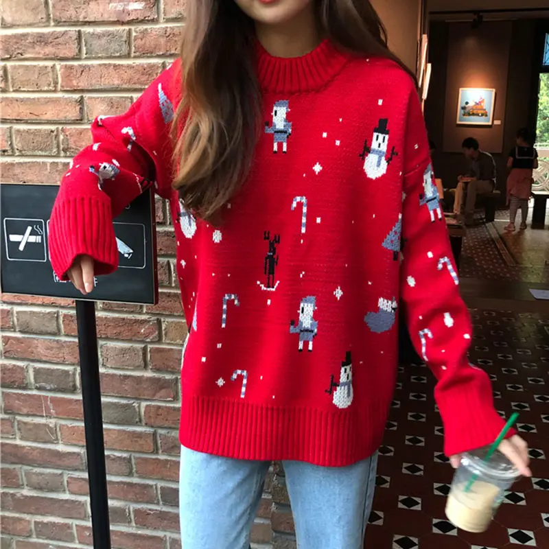 Special Offer Women s Knitted Chrismas Snowman Thick Sweater Autumn Winter O Neck Long Sleeve Female Pullover Loose Reindeer Ladies Jumpers Discount 48% Today!