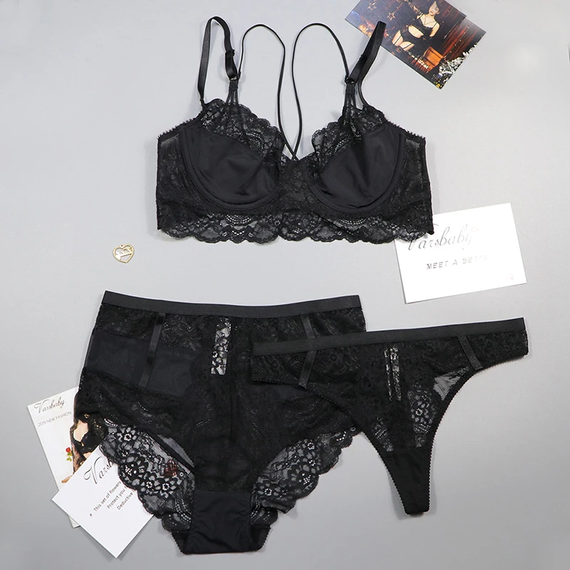 Best . (54% Off) Buy Varsbaby sexy unlined 3 4 cup underwear floral lace 3 pcs bras+high waist panties+thongs for ladies Price Online.