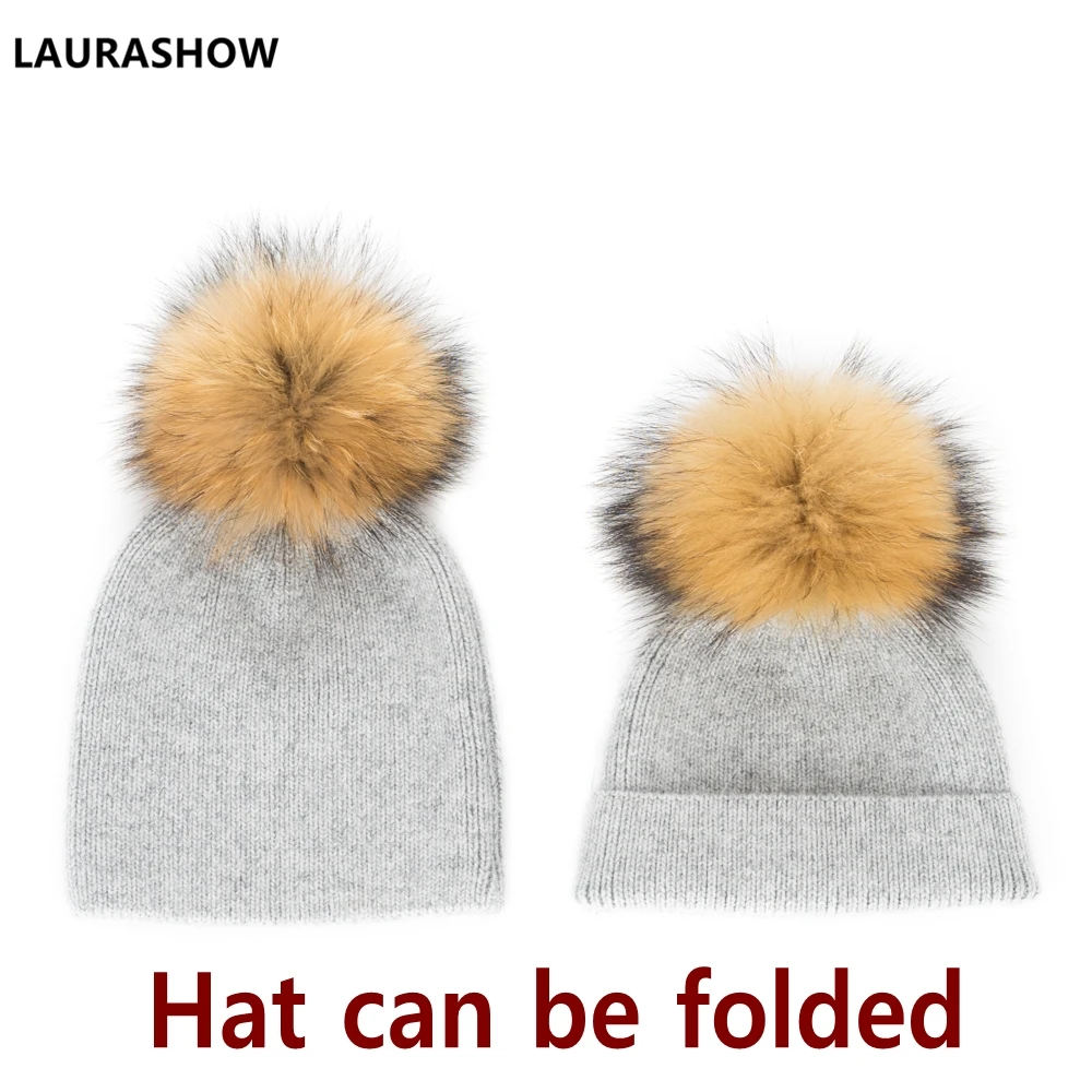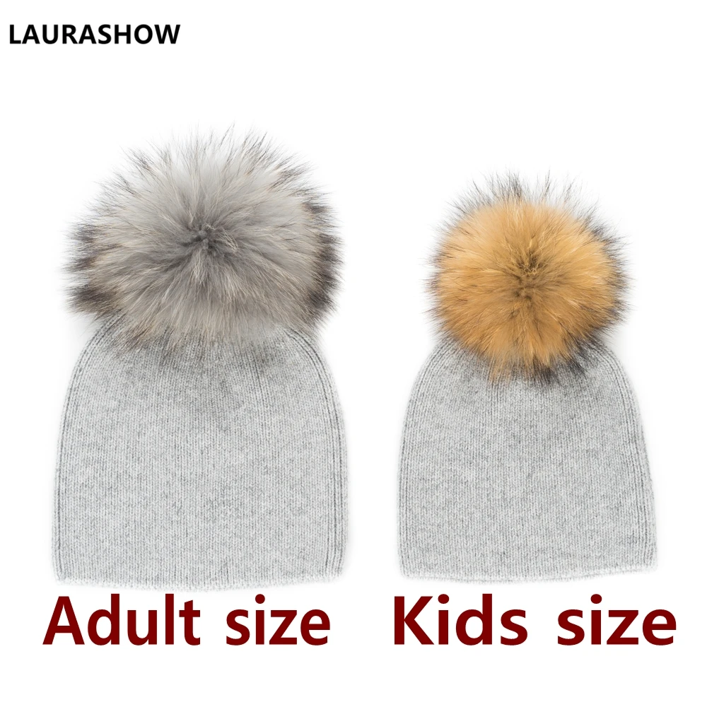 Special Offer LAURASHOW 2019 Autumn Winter Baby Beanie 15 16cm Real Fur Pompoms Warm Sleep Wool Cap Kids Clothing Accessories Hat Discount 41% Today!