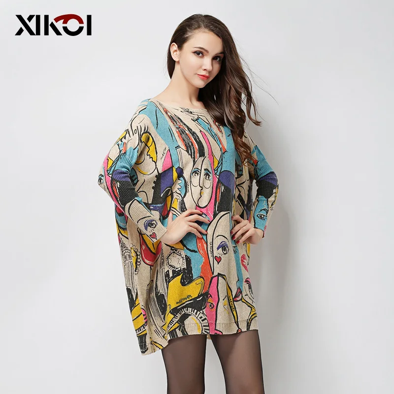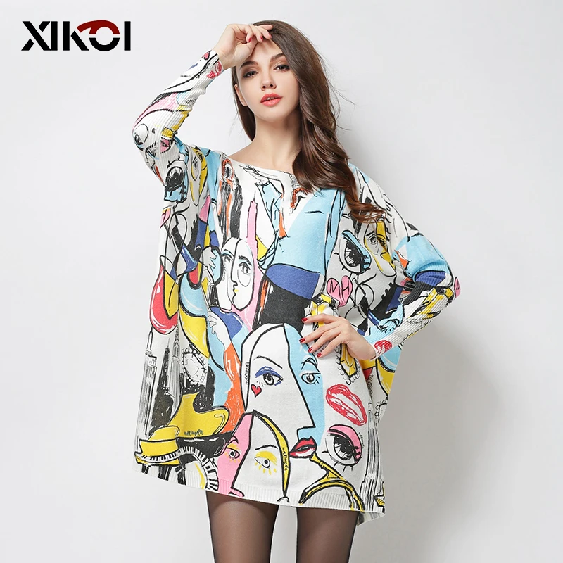 Special Offer 2019 Autumn New Oversize Knitted Sweater Women s Pullover Long Pull Femme Winter Fashion Ladies Print Sesy Slash Neck Top sweter Discount 47% Today!